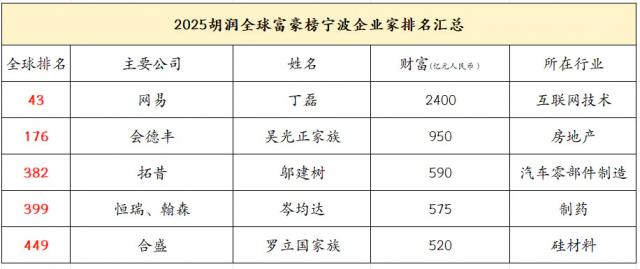 2025 胡润全球富豪榜上,宁波共有 37 人上榜。我统计了 500 强的名单,很多大名相信各位都听过。